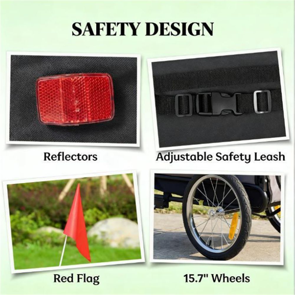 - Reflectors and a flag enhance visibility, an internal leash keeps pets secure