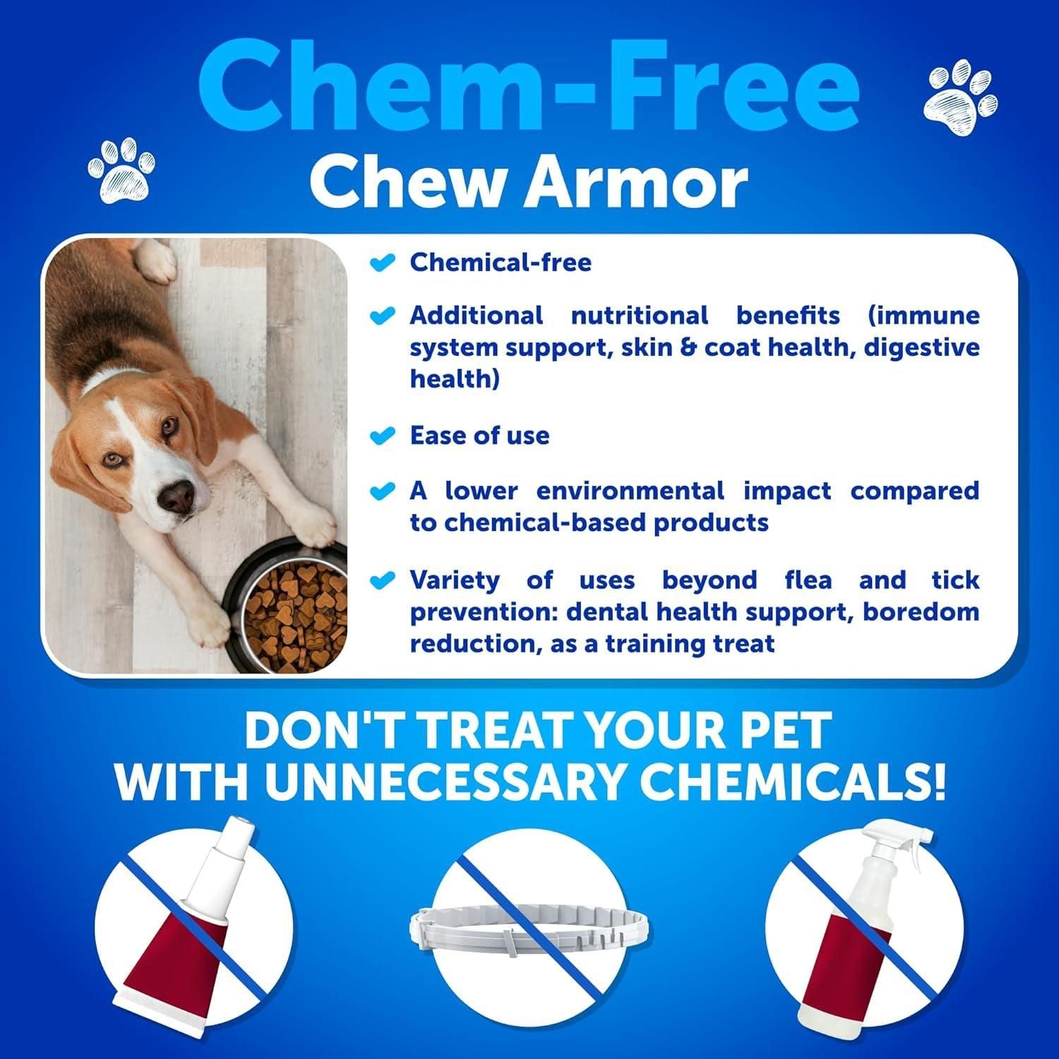 1.comfortable use: are you looking for a natural & mess-free supplement? tired of uncomfortable flea collars? our flea chews for dogs are a perfect way to support the dog's enjoyable outdoor time.